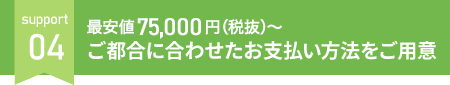最安値75,000円(税抜)~のシンプルなプランをご用意しております。お客様のご都合に合わせた複数のお支払い方法をご用意しております。お気軽にご相談ください。